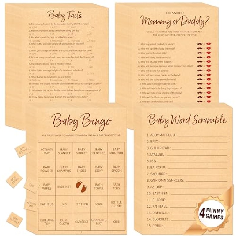 Baby Shower Game Set with 4 Fun Activities