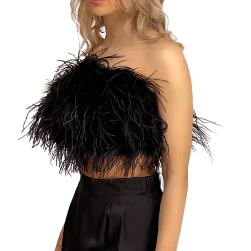 Black Ostrich Feather Crop Top for Hen Dos