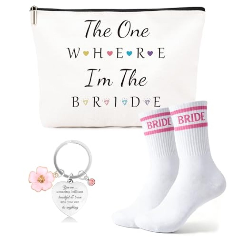 Bride to Be Celebration Gift Set with Makeup Bag, Cosy Socks & Keychain