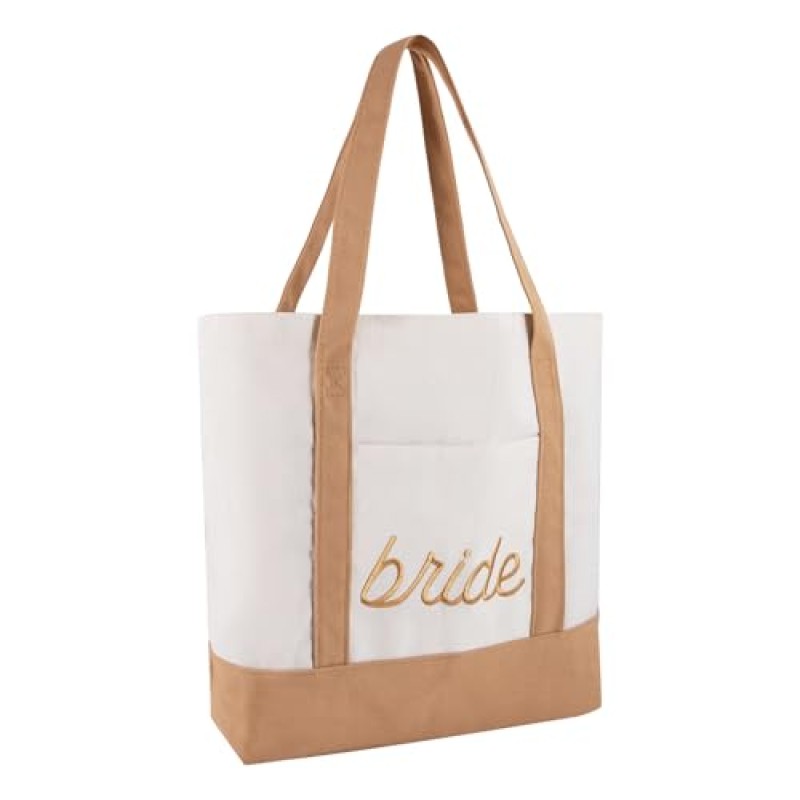 Celebrate the bride-to-be in style with this delightful beige tote bag, thoughtfully crafted to add a touch of elegance and fun to any hen do or bridal shower. Made from a durable blend of polyester and cotton, the bag features chic apricot embroidery spelling 'Bride,' making it a perfect accessory that compliments any outfit during the festivities. With its spacious 14.5 by 14.9-inch size, it easily holds essentials like cosmetics, phone, and keepsakes, making it both practical and pretty. Whether it’s carried around on a lively night out with the girls or used to keep personal items organised throughout the celebration, it embodies the joyous spirit of the occasion. This tote bag not only elevates the bridal look but also makes a lovely keepsake or gift for the bride or bridesmaids, creating special memories to treasure. Its sturdy construction ensures it can be reused long after the wedding day, reminding everyone of the wonderful moments shared leading up to the big day.