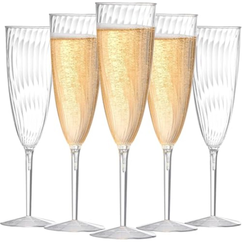 - Set includes 24 clear plastic champagne flutes