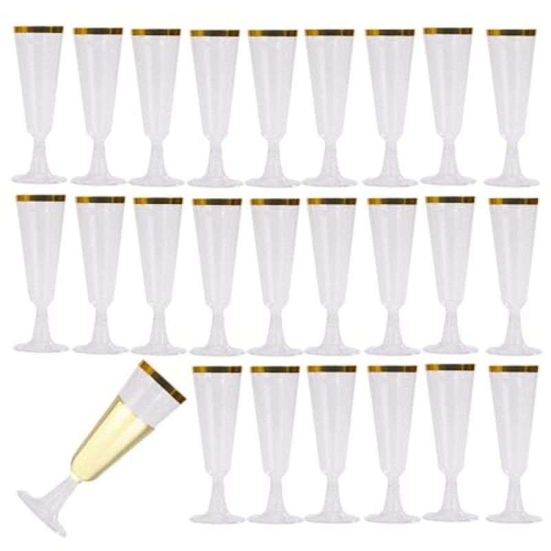 Elegant Gold Rim PVC Champagne Flutes - Pack of 25
