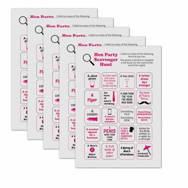 Turn your hen do into an unforgettable adventure with this delightful Hen Party Scavenger Hunt Game. Crafted to bring everyone together, this game encourages guests to mingle and have fun by searching for various items and completing entertaining challenges throughout the celebration. Each guest receives a beautifully printed game card featuring 20 unique prompts, including playful tasks like finding a piece of fancy dress.