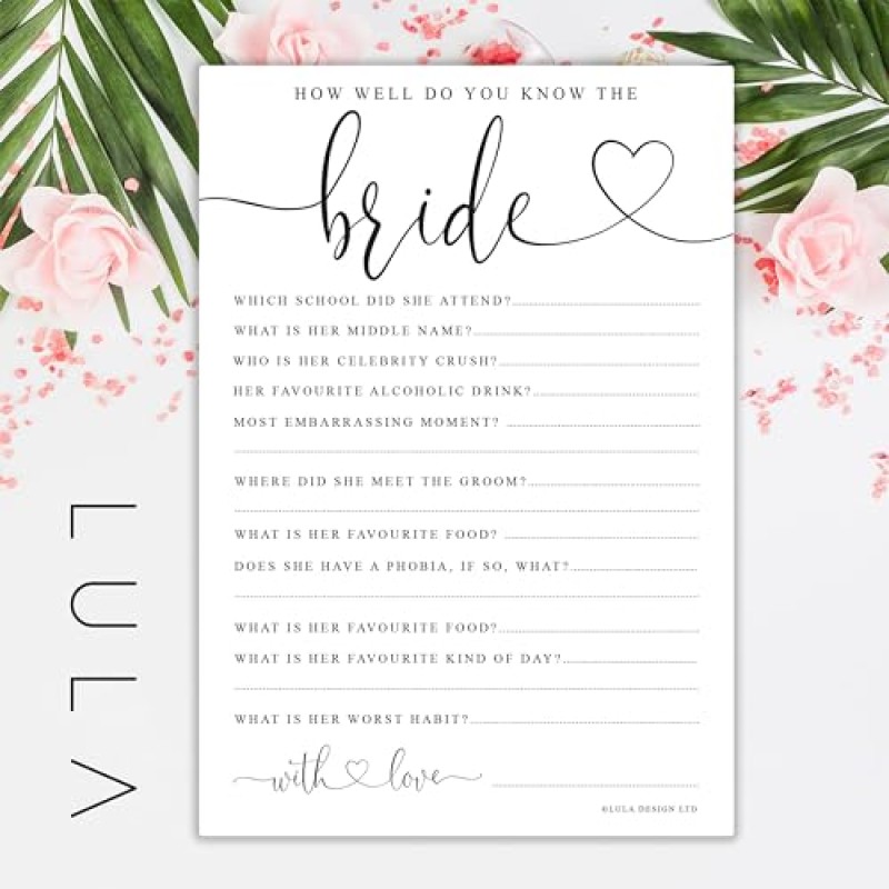 Lula Design A5 'How Well Do You Know the Bride?' Quiz Pack of 10