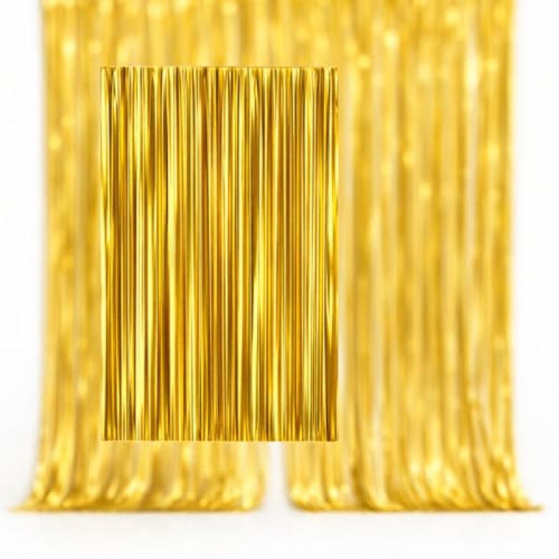 - Includes 2 premium metallic gold foil fringe curtain panels