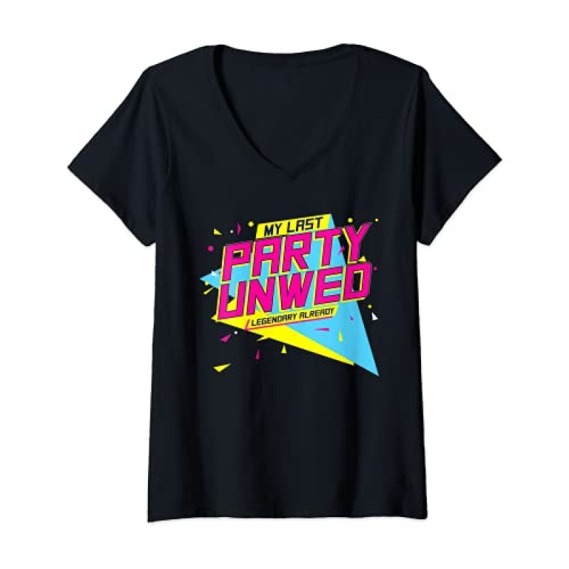 Celebrate the bride-to-be in true 90s style with this vibrant hen party outfit tee, specially designed for the bride herself. Featuring the fun and bold text "My Last Party Unwed, Legendary already," this colourful classic-fit V-neck t-shirt brings a playful retro vibe perfect for hen nights, bachelorette parties, hen weekends, or a memorable girls' night out. Designed as part one of a two-piece matching set, it pairs wonderfully with the coordinating designs for the bridal squad, making group photos a delight and setting the tone for festive togetherness.