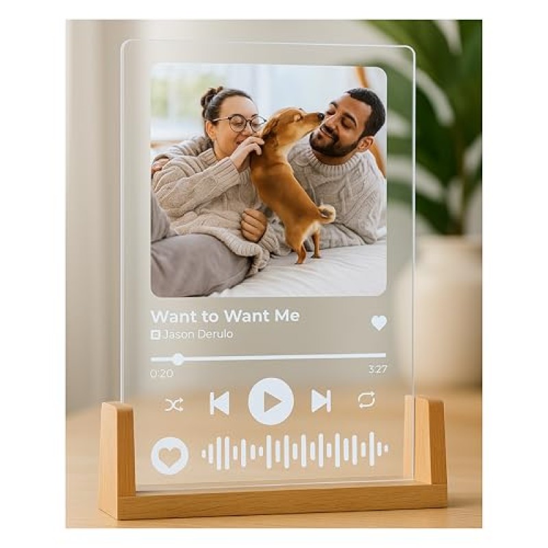- Personalised A5 clear acrylic plaque featuring your chosen song and photo
