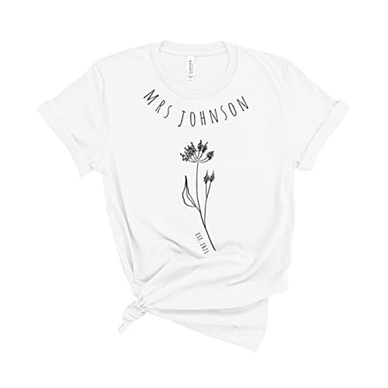 Personalised Mrs T-Shirt with Est Date and Flower