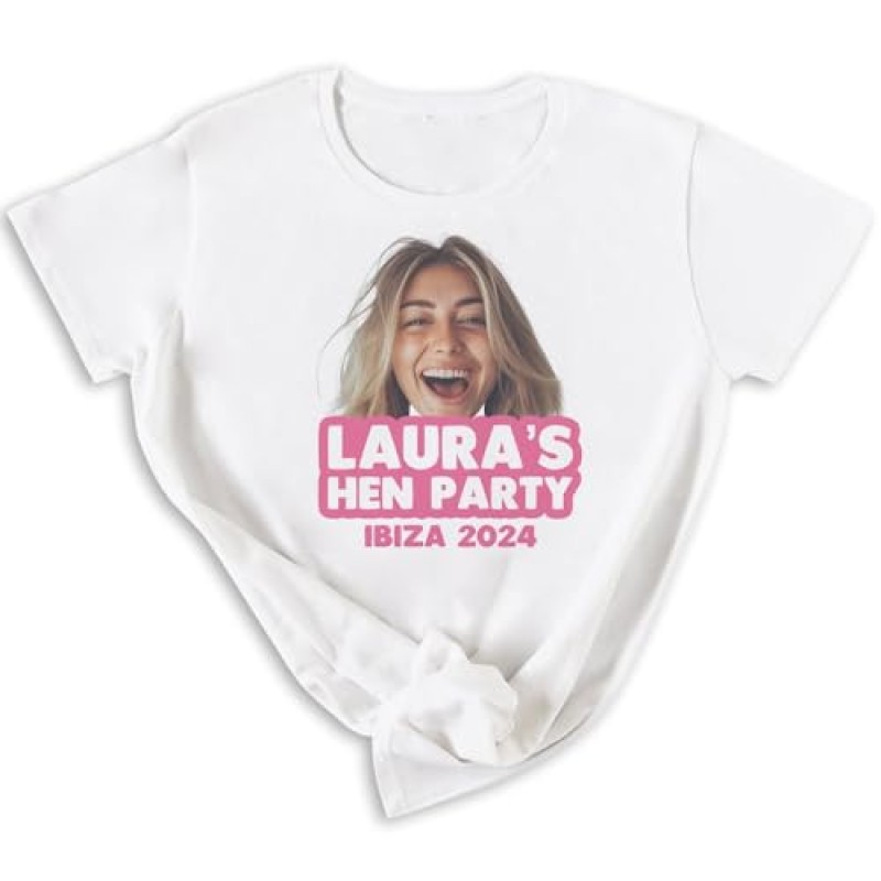 Add a splash of personal charm to your hen do with this delightful personalised white T-shirt. Featuring a clear, vibrant print of a chosen photo and customised wording, it makes a standout keepsake for the bride-to-be and her friends. Crafted from 100% soft cotton, the T-shirt offers comfort throughout the celebrations, whether you're out for a lively city adventure or enjoying a relaxed gathering. The crisp white backdrop ensures your photo and message really pop, creating fantastic photo opportunities for your party album. Effortless to style with jeans or skirts, it helps unify the group and spreads the festive spirit perfectly.