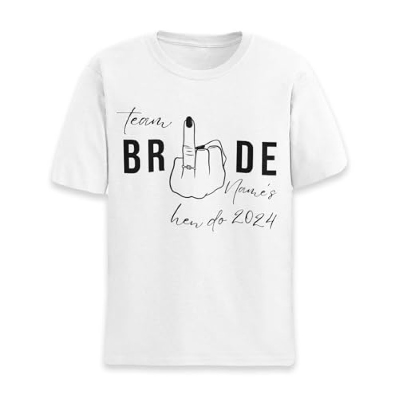 Each T-shirt is customisable with the bride's name and the year of the celebration, creating a special keepsake for everyone involved. Whether you're enjoying a fun day out or striking poses for the perfect group photos, these T-shirts add a charming and unified look to your party. Simply choose sizes from small to extra large to ensure everyone feels fabulous and included.
