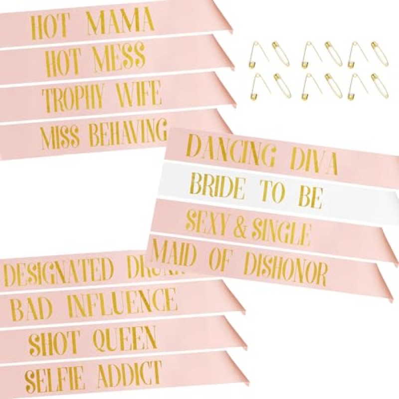 Measuring approximately 63 inches long and 3.7 inches wide, these sashes comfortably fit all members of the hen party, ensuring everyone can join in on the joy. The sashes come ready to wear with securely sewn ends and include safety pins for a safe and adjustable fit. Whether for a bridal shower, bachelorette party, or wedding day preparations, they add a touch of glamour and a lot of laughter, making the party photos truly sparkle and helping the bride’s crew stand out in celebration.