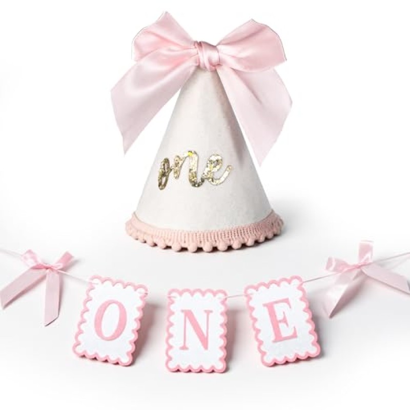 Pink Bow High Chair Banner & Hat for Baby Girl’s First Birthday