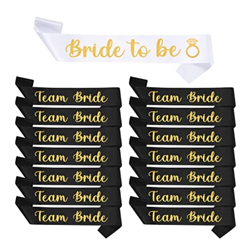 - Includes 15 sashes: 1 white 'Bride to Be', 14 black 'Team Bride'