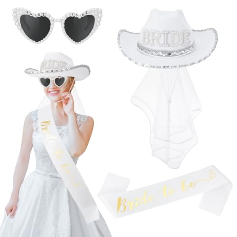 Sparkling Bride Cowboy Hat Set with Veil & Sash