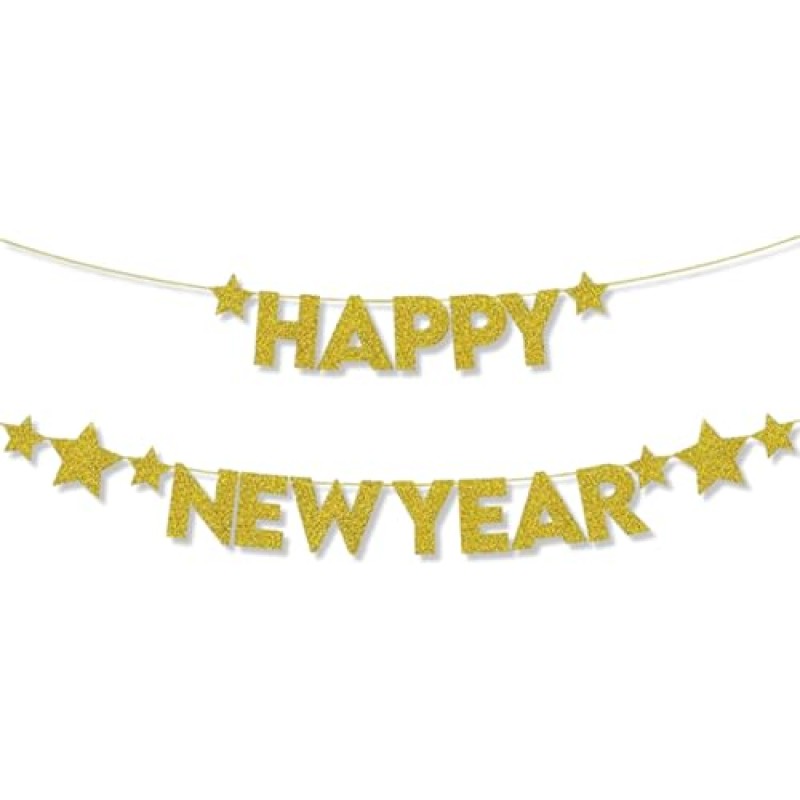 - One gold glitter "Happy New Year" banner with star designs