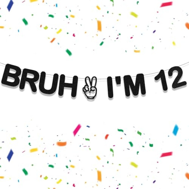 Sparkly Black 'Bruh I’m 12' Birthday Banner