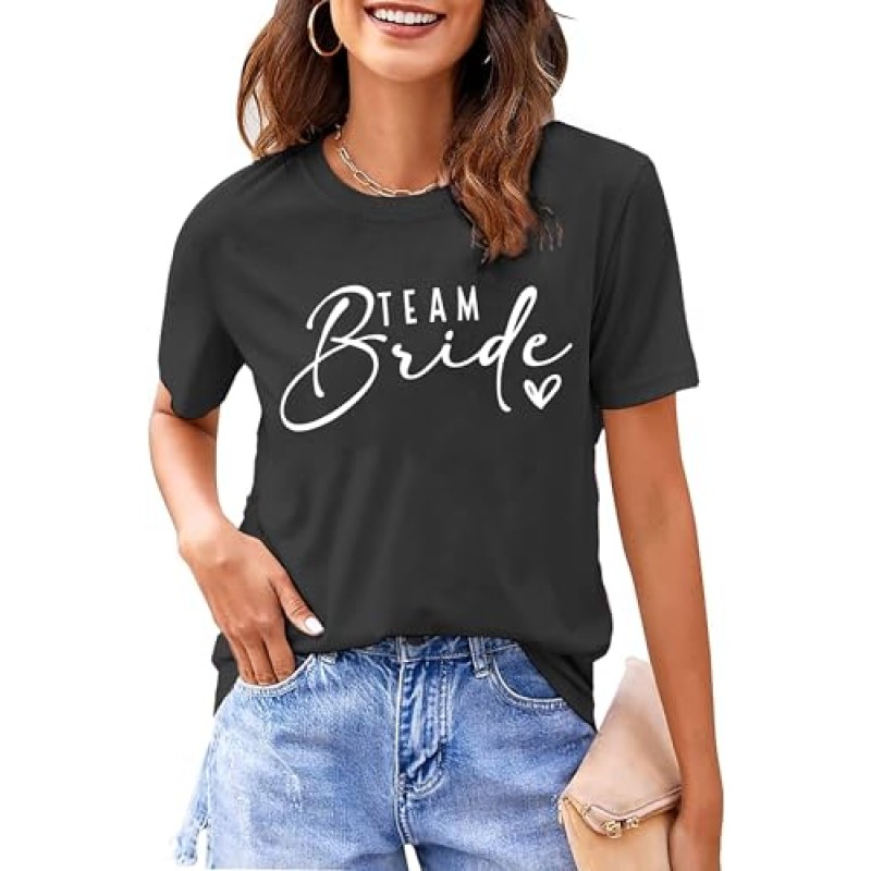 - Design: Classic round neckline with durable “Team Bride” print
